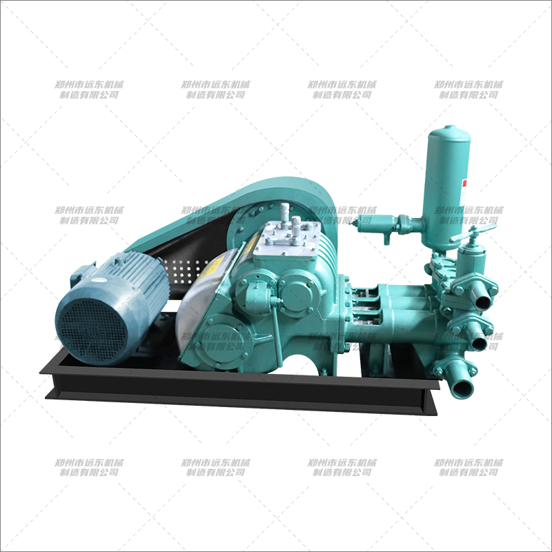 BW250注漿機主要作用于隧道開鑿與維護道路、橋梁、水壩、礦山建設和高層建筑的基礎設施處理工程及各類注漿施工工程,巖芯鉆機配套輸送泥漿,礦井排污及遠距離送水等其他用途。 該機為臥式三缸往復單作用活塞泵,該泵具有兩種缸徑和四擋變量,大缸套用于1000米大口徑鉆機配套,小缸套用于1500米小口徑鉆機配套。 1、具有可滿足大小口徑鉆機所需的各四擋流量,參數(shù)選合理,可與XY-4和XY-5型鉆機配套使用??蓾M足不同口徑、不同孔深、不同地質巖心鉆探的需要。 2、活塞為碗形加尼龍靠背的自封式S型聚胺脂橡膠活塞,大大提高使用壽命。 3、拉桿上設有五道防塵密封圈,以防止液力端的泥漿帶入動力端和動力端潤滑濾。密封可靠,使齒輪延長使用壽命。 4、進排水閥采用鋼球。并在閥蓋上設有減聲橡膠墊,以減少沖擊噪聲。5、壓力表采用BY-1型抗震壓力表,壽命長。 6、可拆性好,便于維修和搬遷。